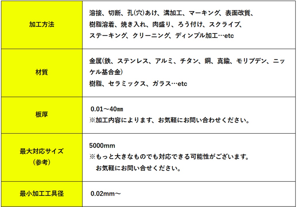 レーザックスで対応可能なスペックを以下にまとめました。